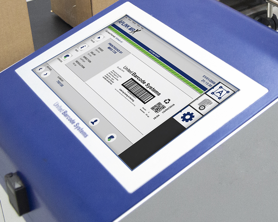 UBS Aplink systems come with UBS Designer PC-based software to design and upload virtually unlimited numbers of print images into the printer memory. Printers can then run in stand-alone mode without a PC connected using the touch screen controller to select the required print image and enter variable data such as batch code and expiry date. It is also possible to connect to host systems to automatically select print images and populate variable data fields without operator intervention. Martek offers integration services to connect printers to a wide range of host systems.
